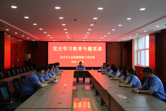 柳晨海以“用好红色资源,传承好红色基因”为主题,先是传达了习近平总书记的重要讲话,详细解读了用活红色资源的必要性并多方位、多层次介绍了吉林省、延边州内的着名红色教育基地的详细地址、结构以及每一个红色基地所承载的历史渊源,给党员干部们送上了精神食粮,确保党史学习教育入耳入脑入心,提高党员干部们司法为民的积极性。
