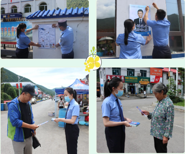 在小镇的中心广场上、学校里,检察官与民警们通过张贴宣传海报、发放宣传单等方式共同向工作人员、居民、经营业主、学生、教师等人员宣讲强制报告制度。