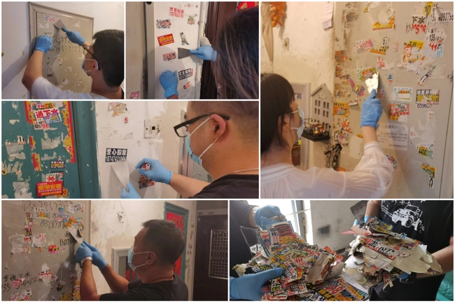 活动当日,志愿者们用铲子、喷壶等工具,对社区街道、电线杆、信报箱、消防器具箱及墙体上张贴的刻章办证、家教信息、疏通下水道等非法小广告进行逐一清理。为了更彻底的清除这些野广告,志愿者们先用喷壶将广告喷湿,再用铲子一点一点的铲除掉。大家默契配合、分工明确,经过一上午的清理,共清除各类野广告100余处,大大改善了社区卫生环境,提高了居民生活品质。