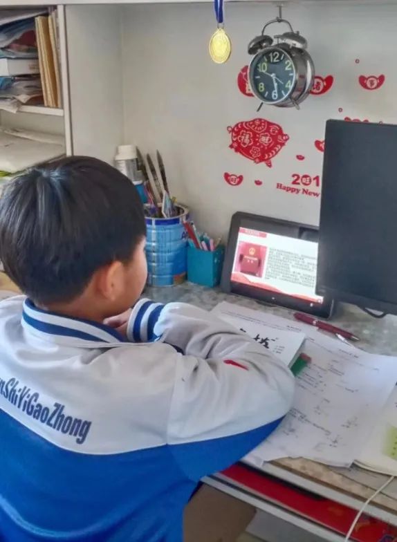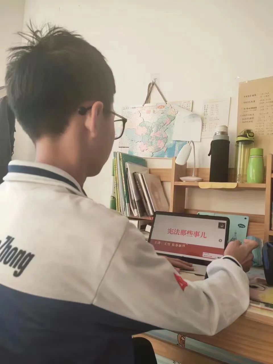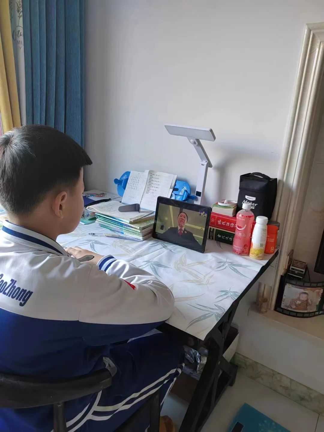 同学们对检察官的线上普法表现出深厚的兴趣,听的津津有味,非常投入。