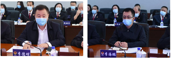 白城市委常委、通榆县委书记李德明,通榆县委常委、政法委书记李海鹏参加座谈