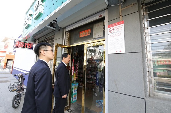近日,在长白县人民检察院未检办开展的“检察建议回头看”专项活动中,当看到校园周边的烟草商铺都张贴的“禁止向未成年人销售烟草制品”标志后,检察官的脸上露出了欣慰的笑容。