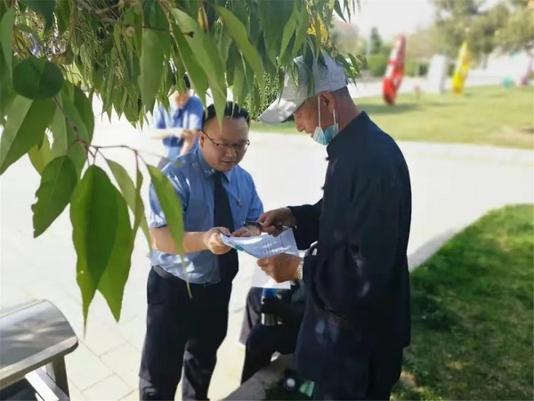 在市场监督管理局、新世纪广场,检察干警向工作人员和附近群众发放调查问卷,并就公益诉讼范围以及公益诉讼服务云平台如何使用等方面的问题进行解答和演示。