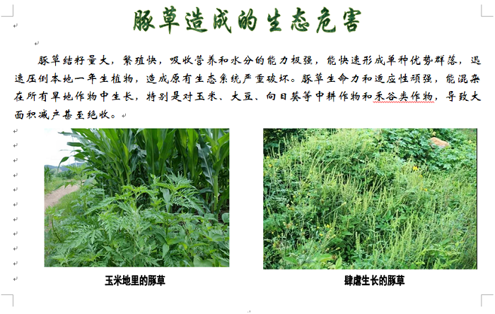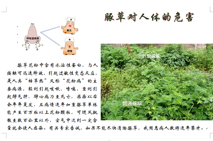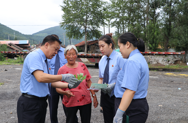 “你们在拔什么呢?让我看看……”一位大娘好奇的问。“我们拔掉的草叫豚草,是一种外来物种。它开花的时候千万别碰,花粉容易引起皮肤过敏、咳嗽、哮喘,严重的可能引起肺气肿,它对咱们庄稼的危害也非常大……”临江林区人民检察院副检察长李玉涛回答道。