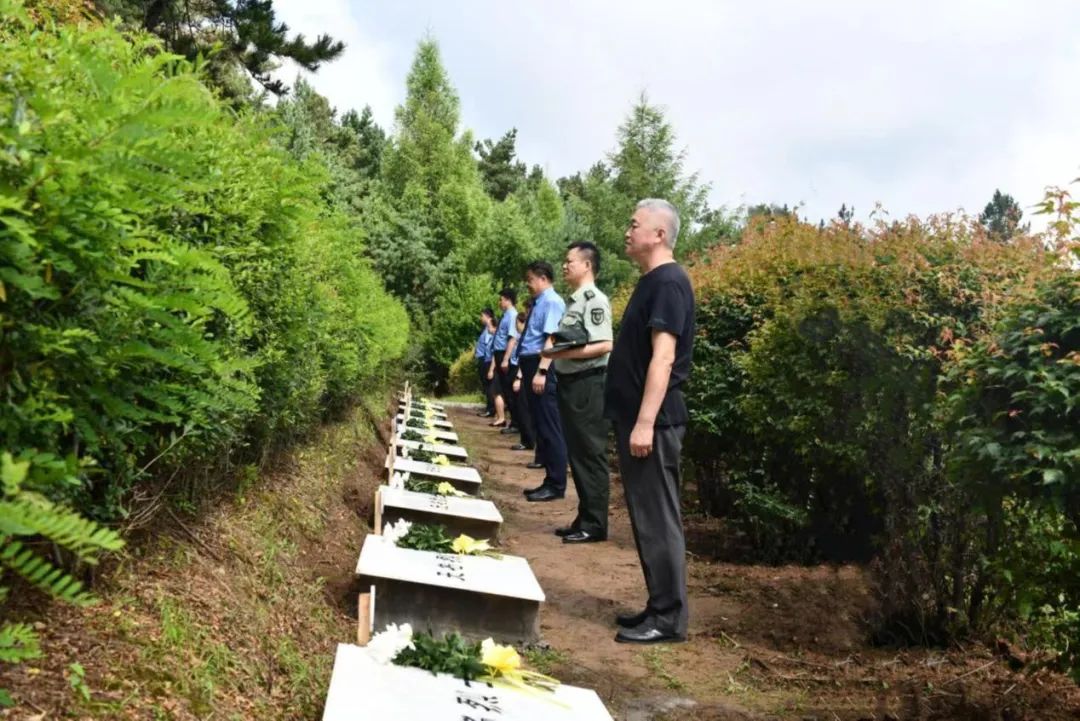 “回头看”现场,九座新迁入的烈士墓干净整洁,得到了很好的维护,陵园环境庄严肃穆,干警们鞠躬致敬,再次缅怀英烈。