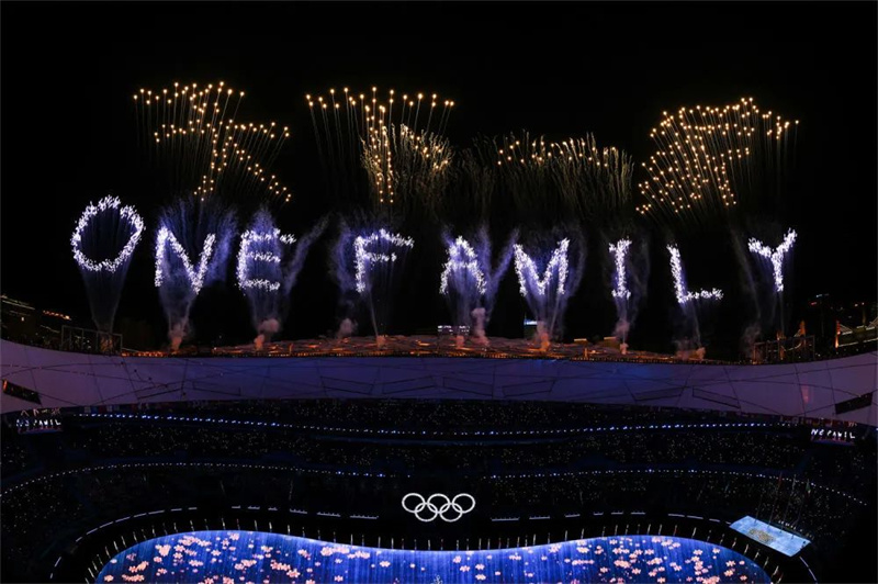 2022220日,中英文“天下一家”字样造型的焰火在国家体育场上空绚丽绽放,为北京冬奥会闭幕式留下美好的永恒瞬间。
