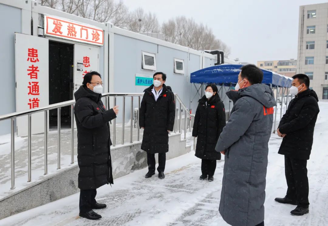 12月21日,省委书记景俊海以“四不两直”方式在长春市暗访检查疫情防控和民生保障工作,在吉林大学中日联谊医院实地察看发热门诊接诊情况。