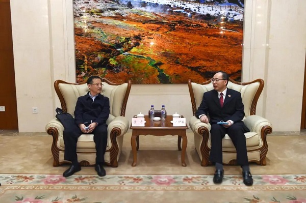 会前,尹伊君检察长向于平组长介绍教育整顿工作情况,特别是查纠整改环节部署举措与工作进展。