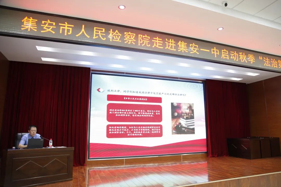 为增强师生自我保护意识及防范不法侵害能力,近日,集安市人民检察院检察长、集安市第一中学法治副校长张钦春走进集安一中,以“崇德敬法 不负韶华 预防未成年人犯罪”为题,为该校高一年级670余名学生送去了秋季法治第一课。