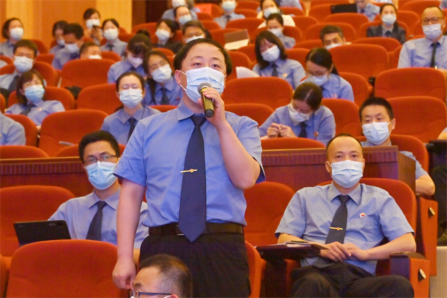 “‘质量建设年’绝不只是业务的质量建设。没有单纯的业务建设!贯彻落实习近平法治思想,就要更加自觉将政治融入业务,一体抓实、抓好。”9位学员代表发言后,张军结合大家谈到的问题进行“问诊式授课”,从为什么提出“质量建设年”、“质量建设年”要解决哪些问题、怎样抓好“质量建设年”三方面进行答疑解惑——
