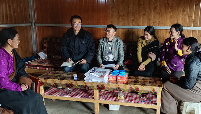 “党的二十大报告中提出要‘全面推进乡村振兴’并为我们全面实现乡村振兴指明前进方向。今天咱们农村老百姓的日子好了,将来还会越来越好!”近日,青海省果洛藏族自治州检察院派驻吉卡乡贡章村驻村工作队用通俗易懂的语言向贡章村党员、牧民群众宣讲党的二十大报告。 本报记者王丽坤摄