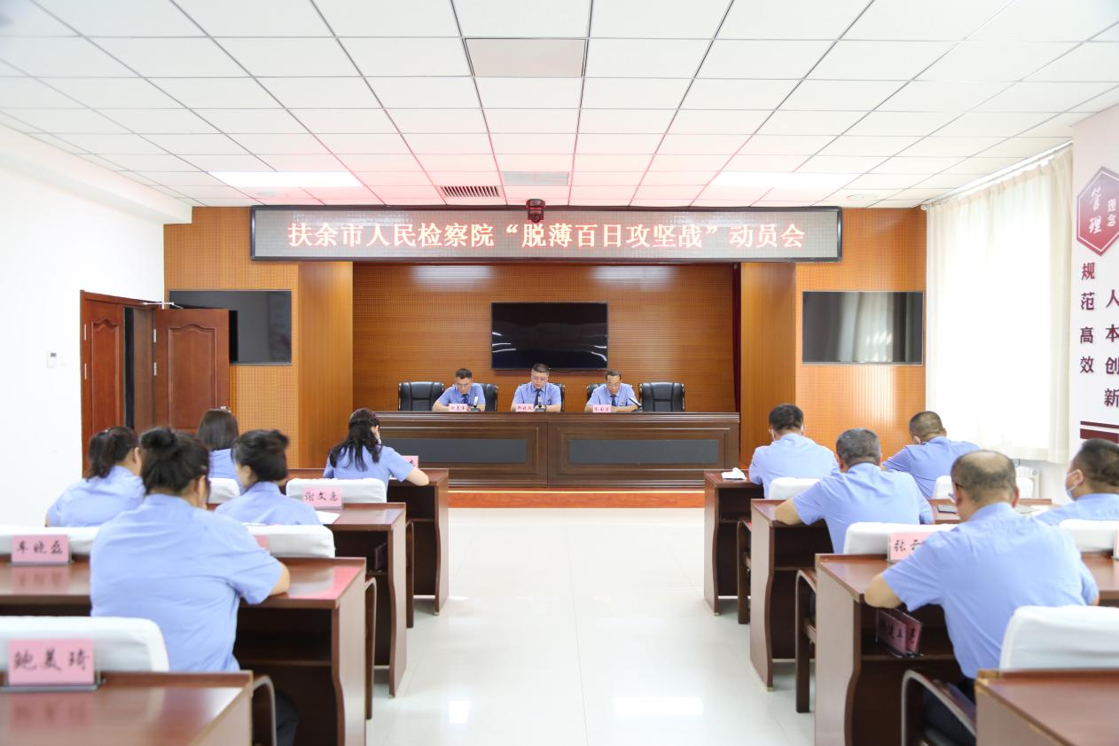 8月16日,扶余市人民检察院召开“脱薄百日攻坚战”动员大会,党组书记、检察长郑晓政同志出席会议并讲话,党组成员、副检察长朱国君同志主持会议,院领导班子成员、全体检察干警参加会议。