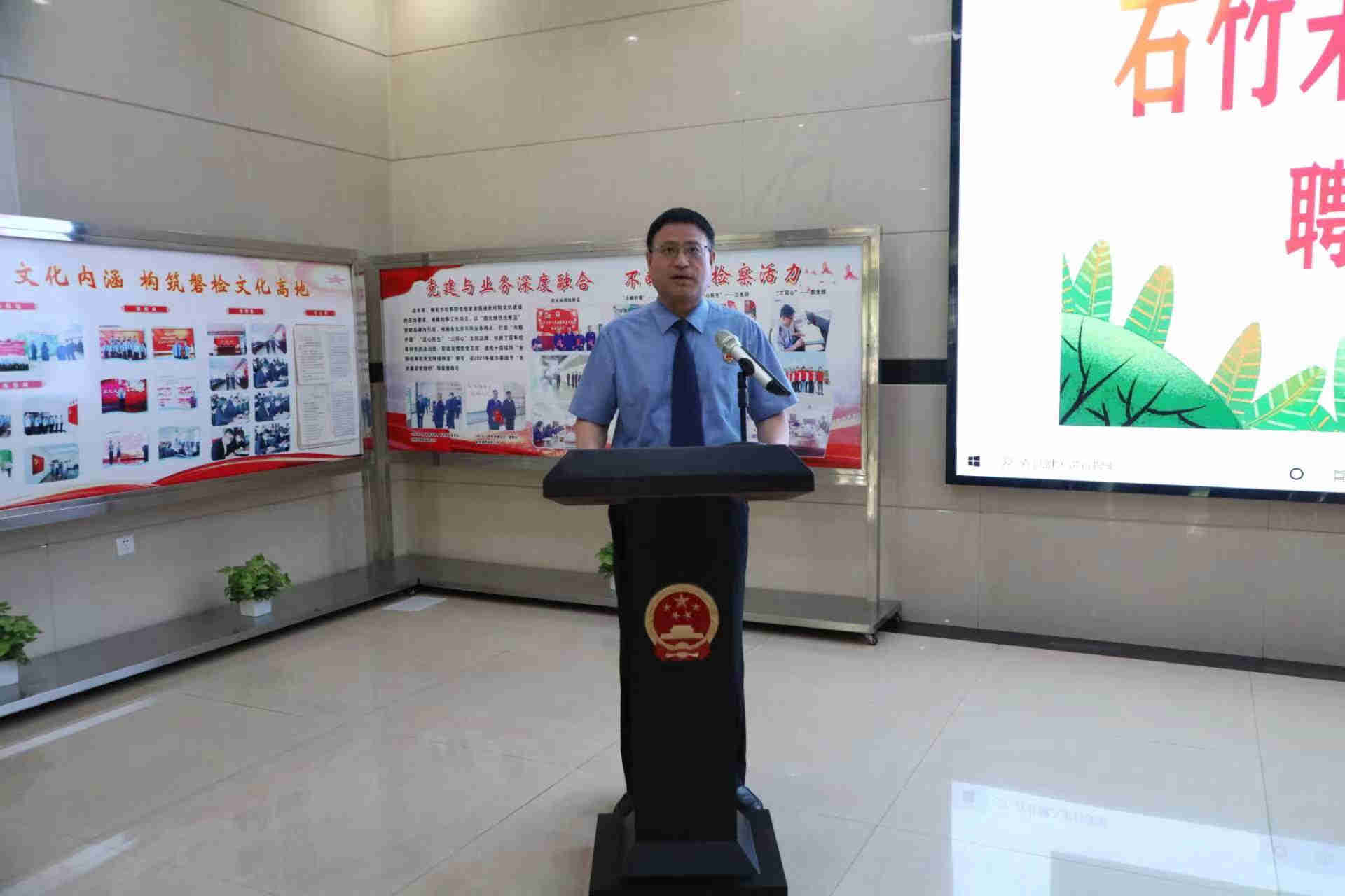 邱三楚检察长详细介绍了“石竹”未检工作室品牌创办理念及设计寓意。“石竹”是一种花,花语是“天真无邪、纯洁的爱”,寓意未检人要用浓浓的爱心关爱未成年人;“石竹”的“石”代表家乡“磐石”,寓意未检人感化、挽救、保护青少年“坚如磐石”信心、决心;同时又化用郑板桥的诗《竹石》,寓意未检人开展未成年人检察工作要有“咬定青山不放松”的决心和“千磨万击还坚劲,任尔东西南北风”的冲破重重阻碍的态度。