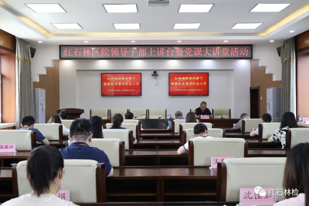 为进一步压紧压实意识形态工作责任,结合本院领导干部上讲台活动安排,7月18日,红石林区院党组成员、政治部主任徐东方同志以“如何做好新形势下检察机关意识形态工作”为主题,为全体党员干部讲授了一堂精彩深刻的党课。